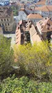 Zum Schloßbergplatz sind es nur ein paar Schritte. Von dort kommst du entweder über eine Treppe oder einen Aufzug, der sich im inneren des Schloßbergs befindet, zum Uhrturm dem Wahrzeichen von Graz.